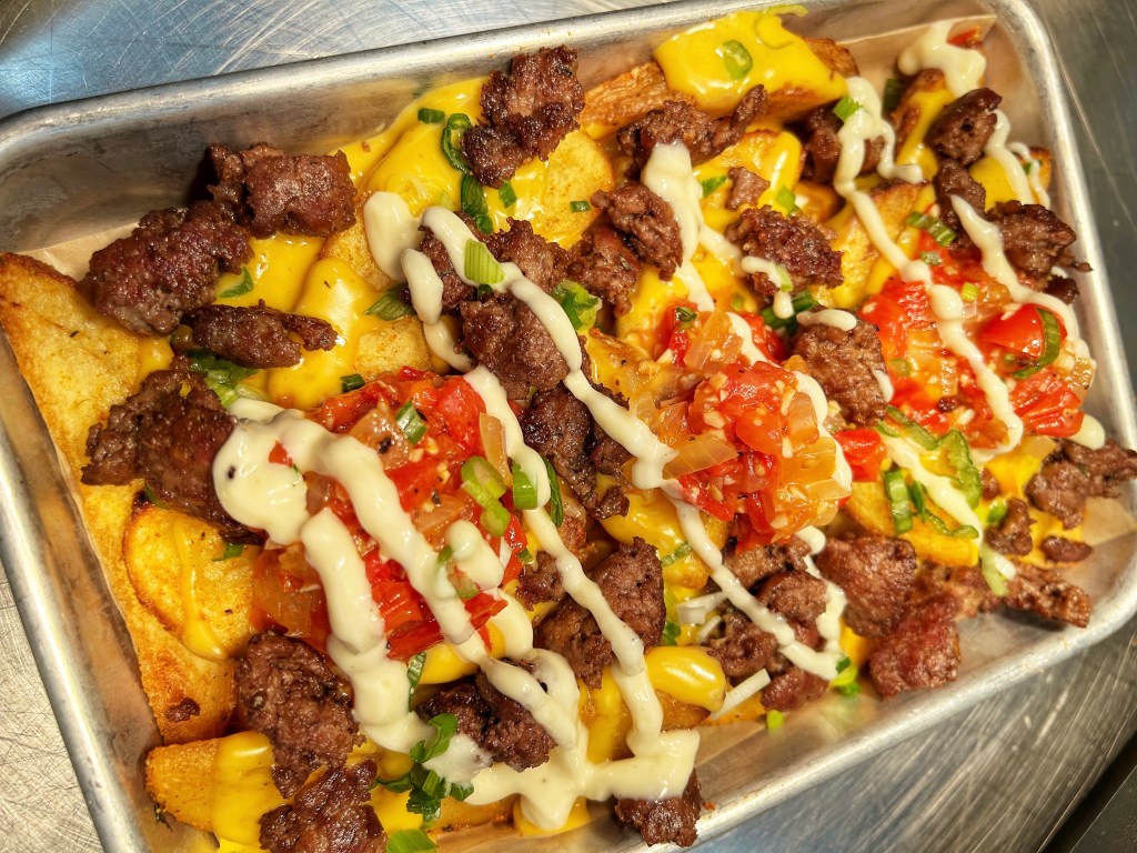 Cajun-spiced Potato Wedges, Cheese Sauce, Chopped Peperonata, Scallions, Garlic Aioli
